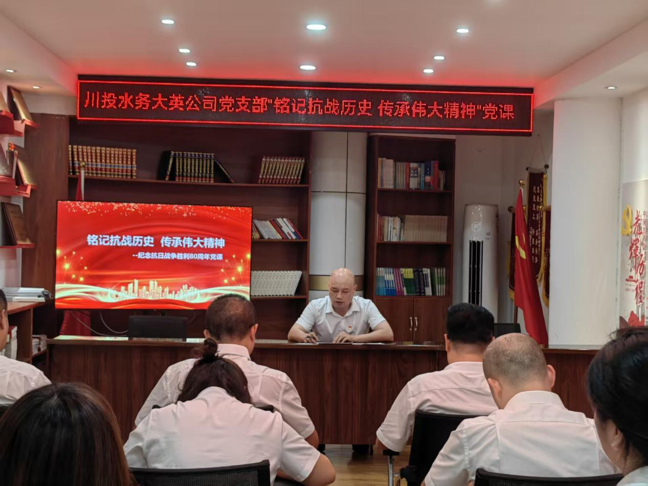 在紀(jì)念中國人民抗日戰(zhàn)爭暨世界反法西斯戰(zhàn)爭勝利80周年之際,9月25日,川投水務(wù)大英公司黨支部書記王文川以“銘記抗戰(zhàn)歷史 傳承偉大精神”為主題,為全體黨員講授專題黨課,推動紅色基因融入崗位實踐。